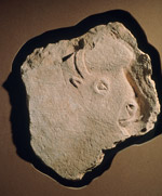 Un des blocs donnés par Suzanne de Saint-Mathurin au musée d'Archéologie nationale, actuellement exposé dans la galerie paléolithique (bloc MAN 83311)